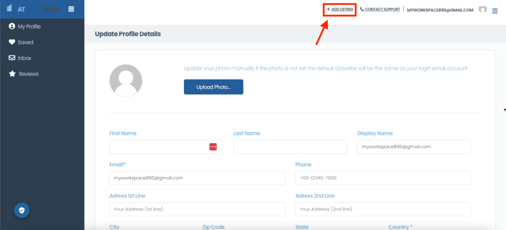 Look for an option or button labeled “Add New Listing” or something similar within the user dashboard. Click on it to begin the process of adding a new listing.
