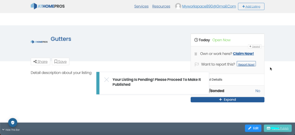 Once you are satisfied with the information, click the “Submit” or “Publish” button to add your listing to the website. Depending on the Listing nature, your listing may go through a moderation process before becoming visible to the public.