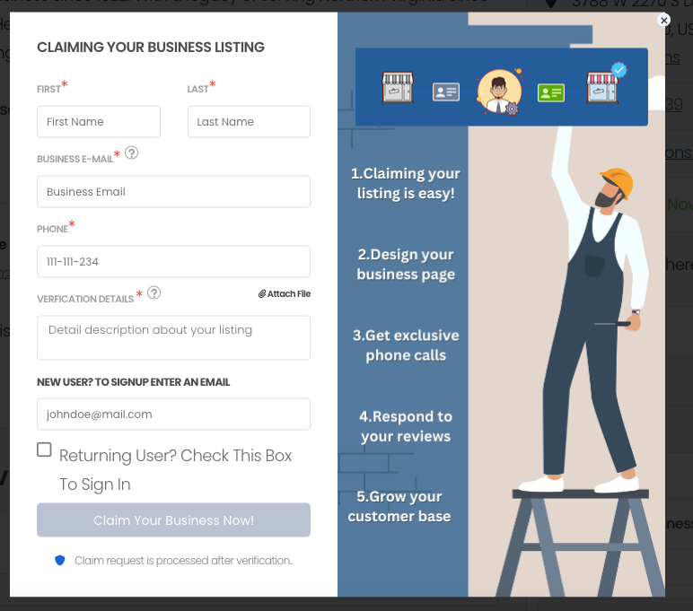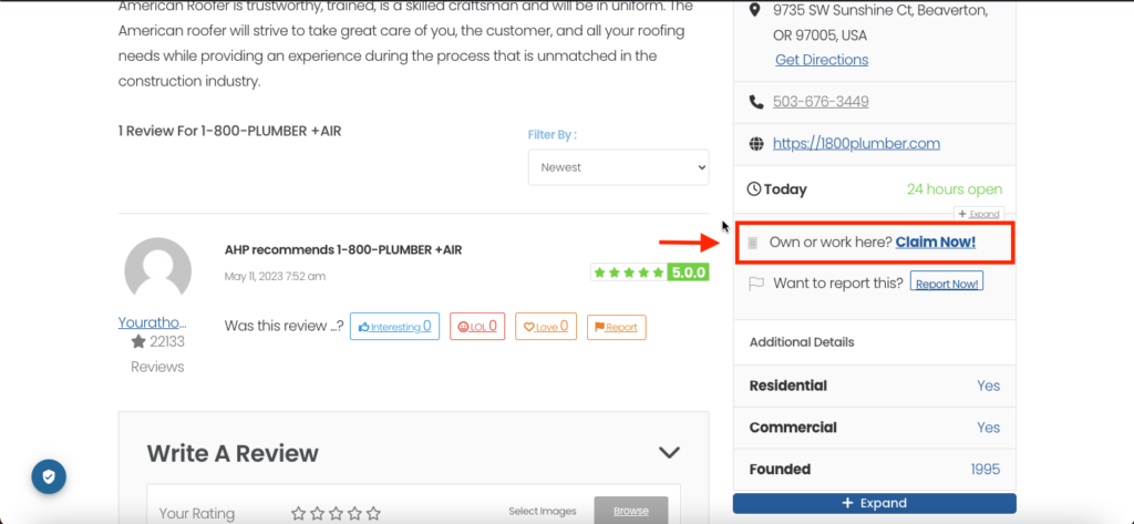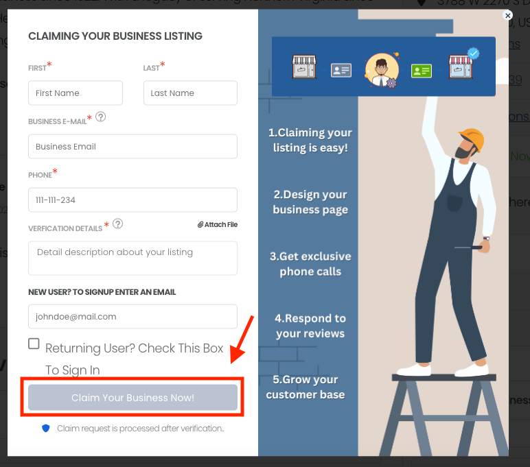 On the listing’s page, there should be an option to claim the listing. Look for a button or link labeled “Claim Now!”. Click on “Claim Now!”: Clicking on the “Claim Now!” link will usually take you to a form where you can initiate the claiming process.